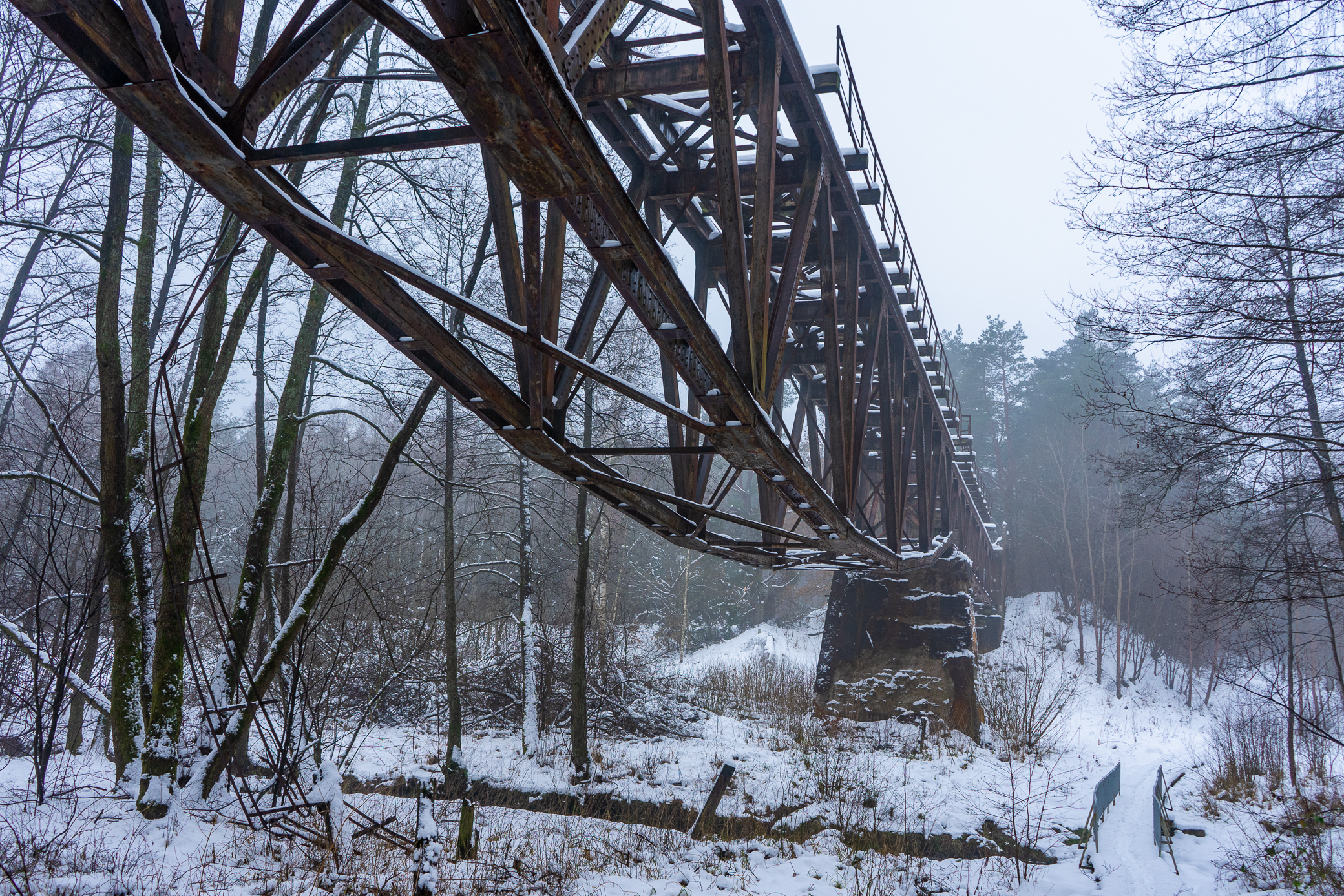Przez Polanów obecnie nie przejeżdżają pociągi, ale nadal można tam zobaczyć pozostałości monumentalnego, stalowego wiaduktu, po którym niegdyś prowadziła linia kolejowa łącząca Grzmiącą i Korzybie. Most nad rzeką Grabową ma 120 m długości i powstał w 1916 r., a swoją funkcję pełnił do roku 1945. Wtedy to został częściowo rozebrany przez Rosjan, którzy zlikwidowali tym samym połączenie kolejowe. Podjęli również nieudaną próbę wysadzenia konstrukcji. Obecnie na most nie ma wstępu, ale pod nim prowadzi szlak rowerowy. Jego nazwa pochodzi od pierwotnego koloru – niegdyś był pomalowany na czerwono, trudno to jednak obecnie dostrzec.