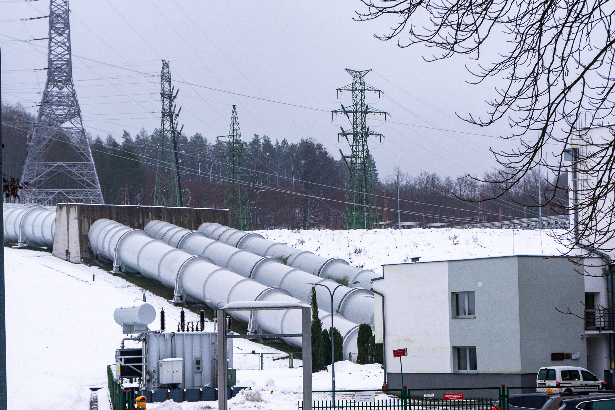 Das Pumpspeicherkraftwerk wurde 1971 in Betrieb genommen und ist eine der ersten Anlagen dieser Art in Polen. Die Forschung zur Energiegewinnung durch die Nutzung der Seen Kamienne und Kwiecko reicht jedoch viel früher zurück, bis in die 1930er Jahre. Die natürliche Lage der Wasserreservoirs mit einem Höhenunterschied von etwa 80 m ermöglicht den Antrieb von Turbinenschaufeln und die Stromerzeugung. Die Seen, ca. 1,5 km voneinander entfernt, sind durch drei Stahlrohrleitungen mit einem Durchmesser von 5 m miteinander verbunden. Das Kraftwerk ist nicht nur eine wichtige technische Einrichtung, sondern auch eine touristische Attraktion – es ist öffentlich zugänglich.